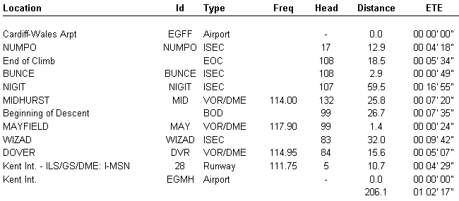 Route By Roberto (101) Flightplan By Dave (109) & Mark (178)