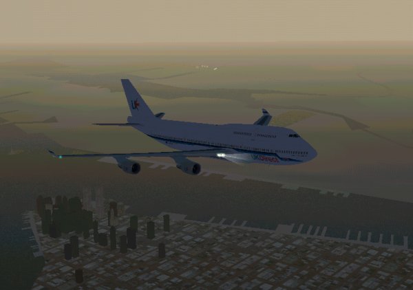 The FS2k 747-400 over New York heading for England and UK Direct.