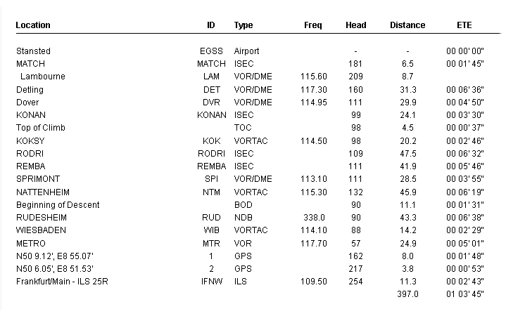 FL.NO: UKD250 From : EGSS STANSTED To : EDDF FRANKFURT Alt : COLOGNE-BONN ETD 15:20Z ALT :29,000 ETA 16:20Z MACH:0.77 ETE 01:00 A/C :B737-800 FUEL 4100kg SET :12,000KG