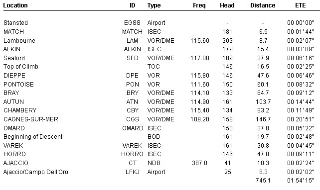 LFKJ Ajaccio, Corsica R/W ILS ELEV LENGTH 20 none 16FT 7933ft 02 110.30 16ft 7933ft 09 none 16ft 3478ft 27 none 16ft 3478ft LFKB Bastia, Corsica R/W ILS ELEV LENGTH 34 111.35 26ft 8235ft 16 none 26ft 8235ft