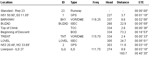 FL.NO: UKD310 From : EGSS STANSTED To : EGGP LIVERPOOL Alt : EGNM LEEDS ETD 08:30Z ALT :21,000 ETA 09:20Z MACH:0.50 ETE 00:50 A/C :ATP FUEL 970KG SET :1800KG